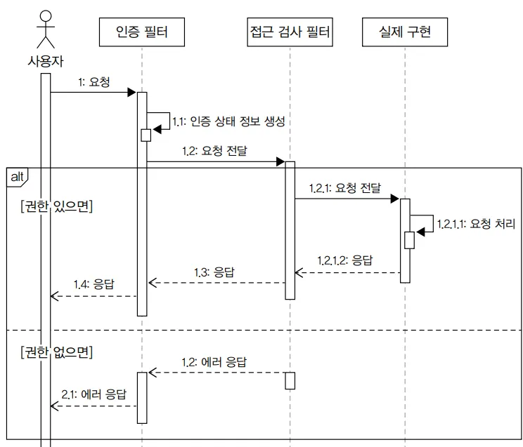 서블릿 필터를 이용한 인증URL 에 대한 권한 검사 과정