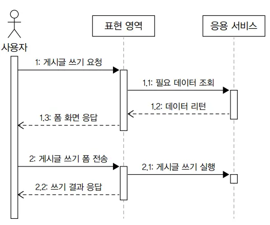 TDD를 즐겨하고 표현 영역부터 개발을 시작한다면, 미리 응용 서비스를 구현할 수 없으므로 응용 서비스의 인터페이스부터 작성하게 될 것