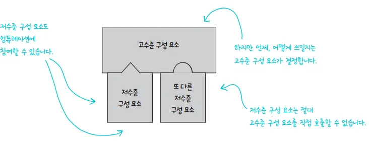 저수준 구성요소가 시스템에 접속할 수 있지만 언제, 어떻게 그 구성 요소를 사용하지는 고수준 구성 요소가 결정함