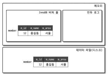 해당 UPDATE문을 싱행한다면 커밋 여부과 관계없이 InnoDB의 버퍼 풀은 새로운 값인 ‘경기’로 업데이트된다.