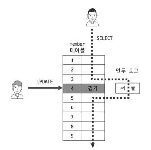 특정 사용자가 레코드 변경 후 커밋하지 않아도 언두 로그를 통해 검색을 수행한다.