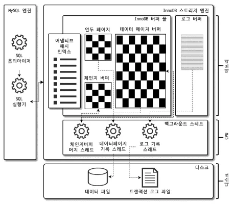 MySQL엔진은 아래 두 가지 요소가 중심을 이룬다.