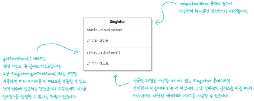 인스턴스가 절대 2개 이상이 되지 않도록 해 주는 싱글턴 패턴입니다.