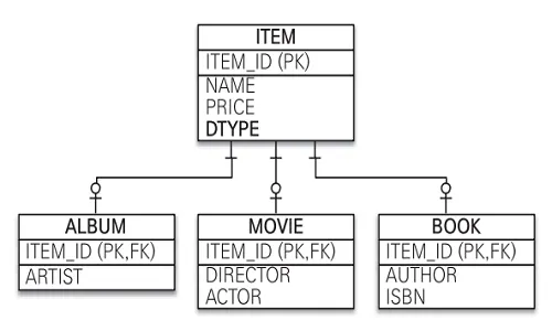 ITEM 테이블의 DTYPE 컬럼을 사용해 어떤 자식 테이블과 관계가 있는지 정의 했다.