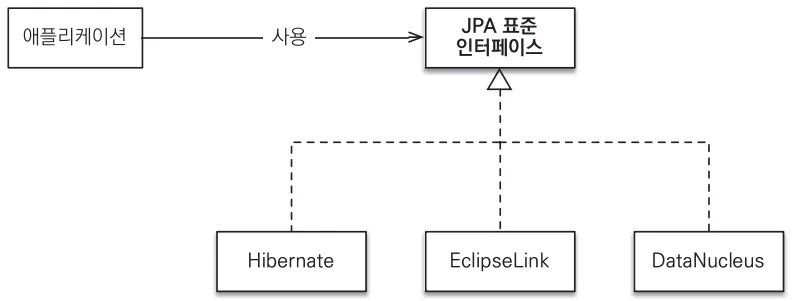 JPA는 자바 진영의 ORM 표준 기술이기 때문에 다른 구현 기술로 손쉽게 변경 가능하다.