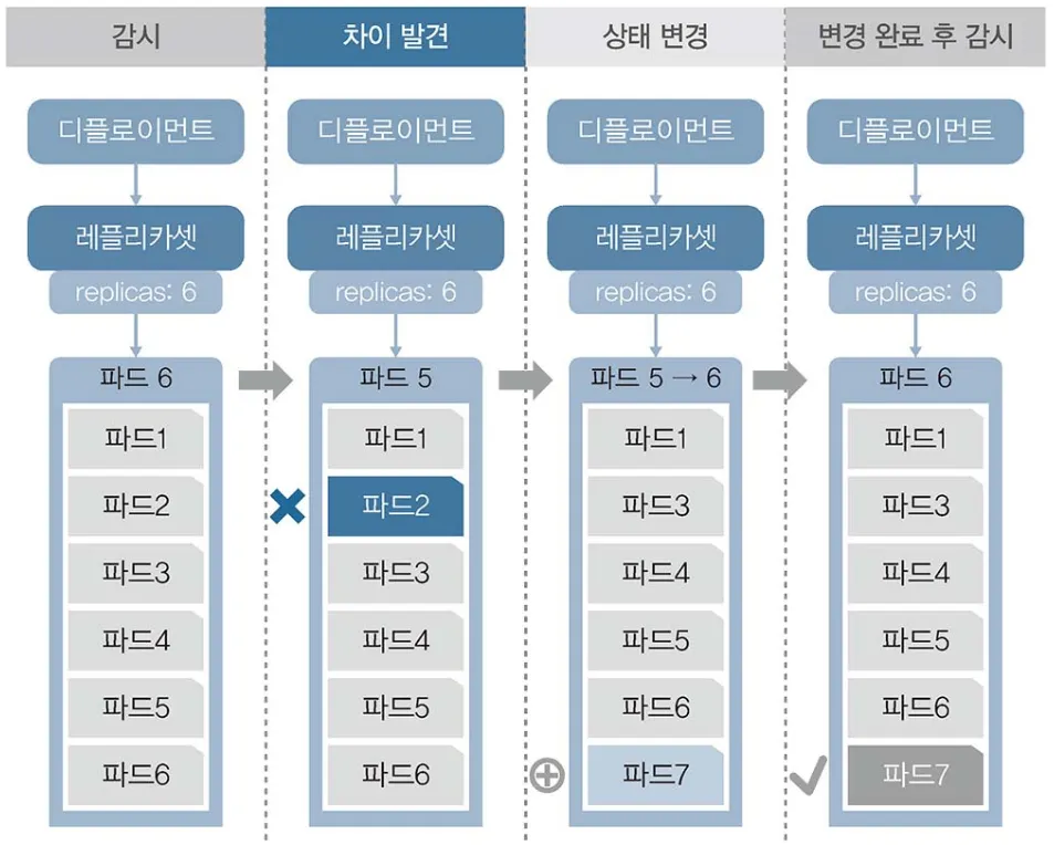 여러 상황 속에서도 쿠버네티스는 파드를 안정적으로 작동하도록 관리 함