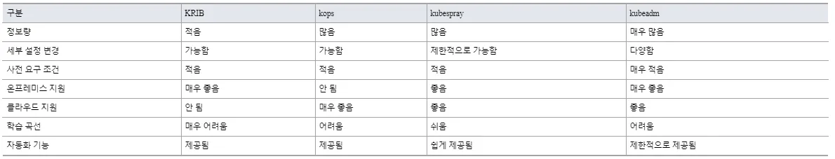 위 4가지 솔루션중 kubeadm가 가장 널리 알려져 있다.