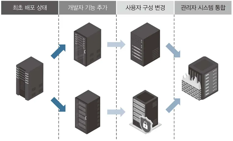 눈송이 서버 = 여러 사람이 만져서 설정의 일관성이 떨어진 서버