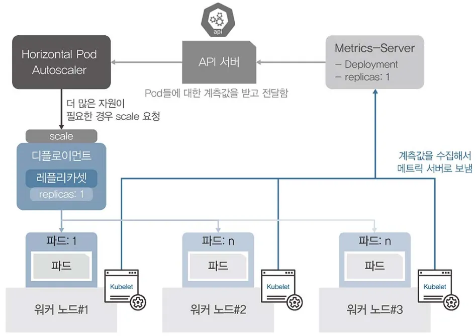 이런 경우를 대비해 부하량에 따라 디플로이먼트의 파드 수를 유동적으로 관리하는 기능을 제공함