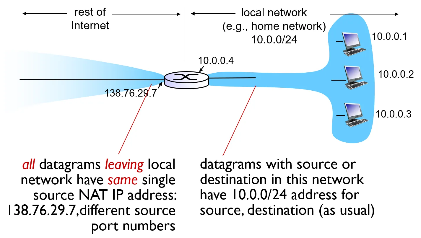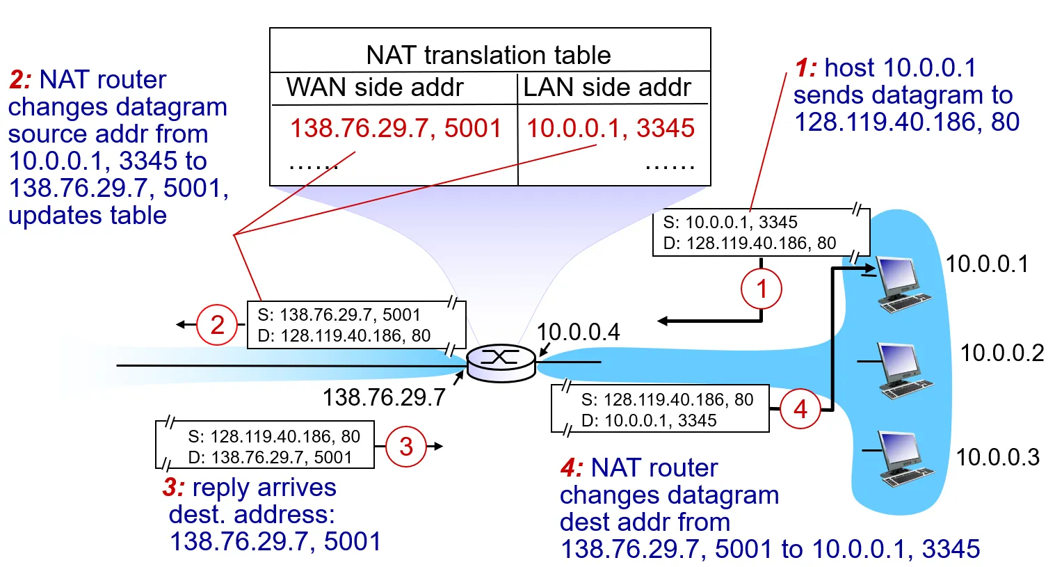 NAT에선 외부로 나가는 모든 데이터그램은 138.76.29.7로 나가게 됨
