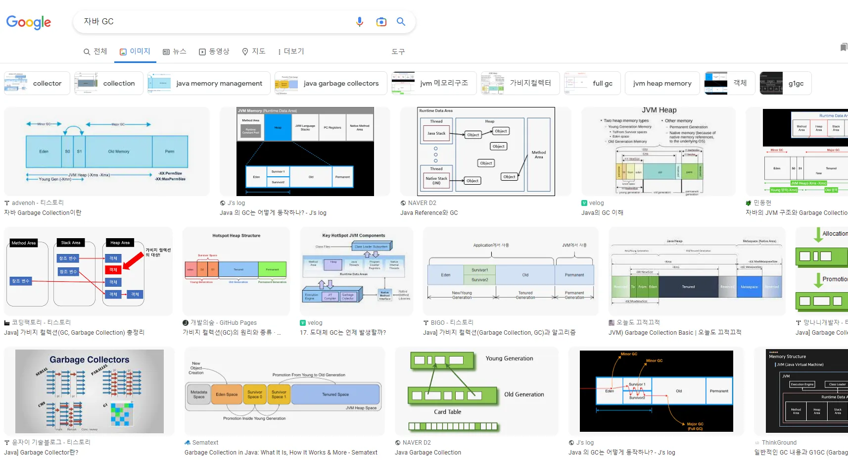 구글에 자바GC를 검색했을 때 얻을 수 있는 결과